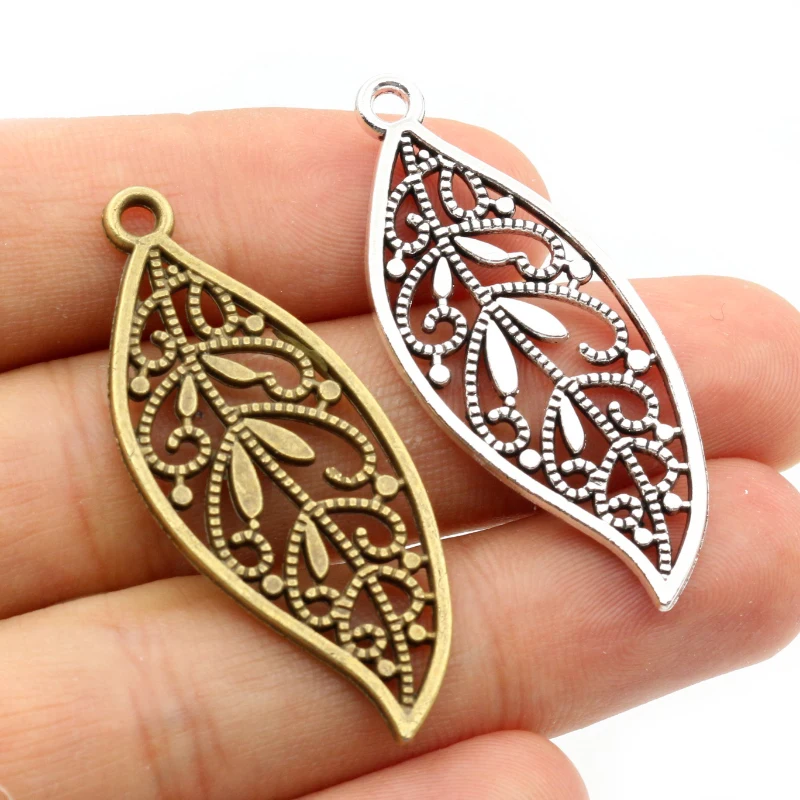 15pcs 43x17mm Antique Bronze Silver Plated Bronze Leaf Handmade Charms Pendant DIY for Bracelet Necklace Jewelry Making Supplies