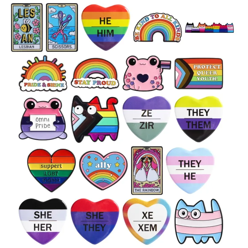 21 Style Pride Day Collection Enamel Pin Heart Pronouns Tinplate Brooch Bi Lesbian Gay Rainbow Cat Badges Omni Frog Jewelry Gift